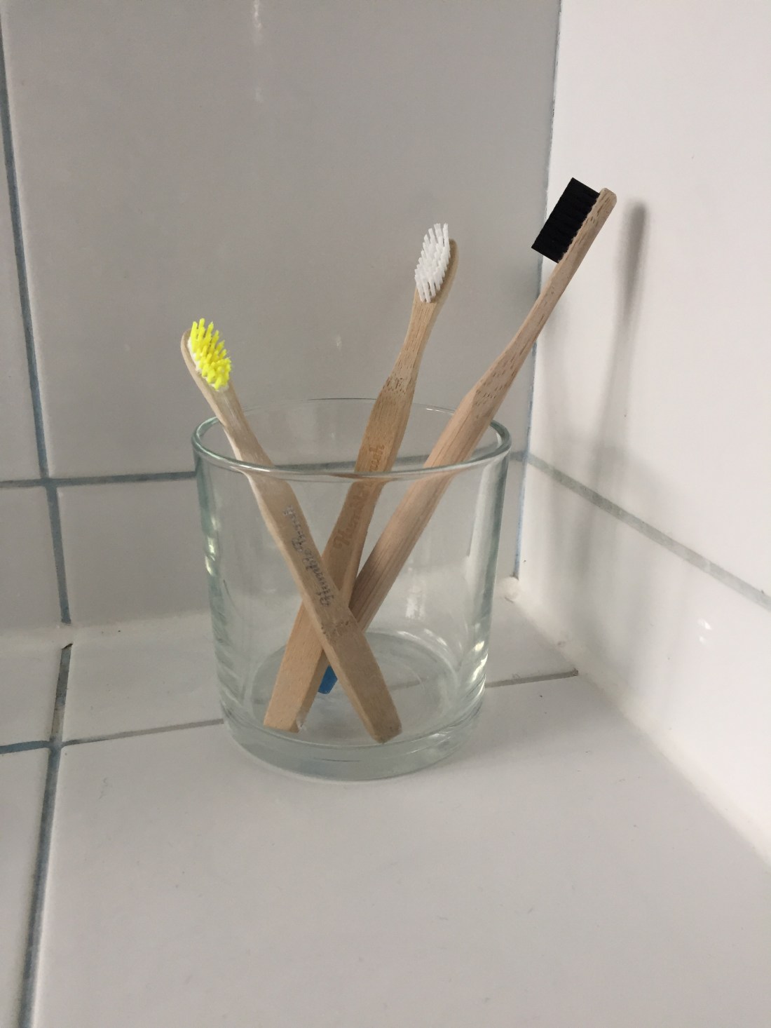 I’d read a few reports about bamboo toothbrushes having a tendency to go mouldy but so far so good with all of ours. I dry the handle off and keep them stored in a glass next to the basin.